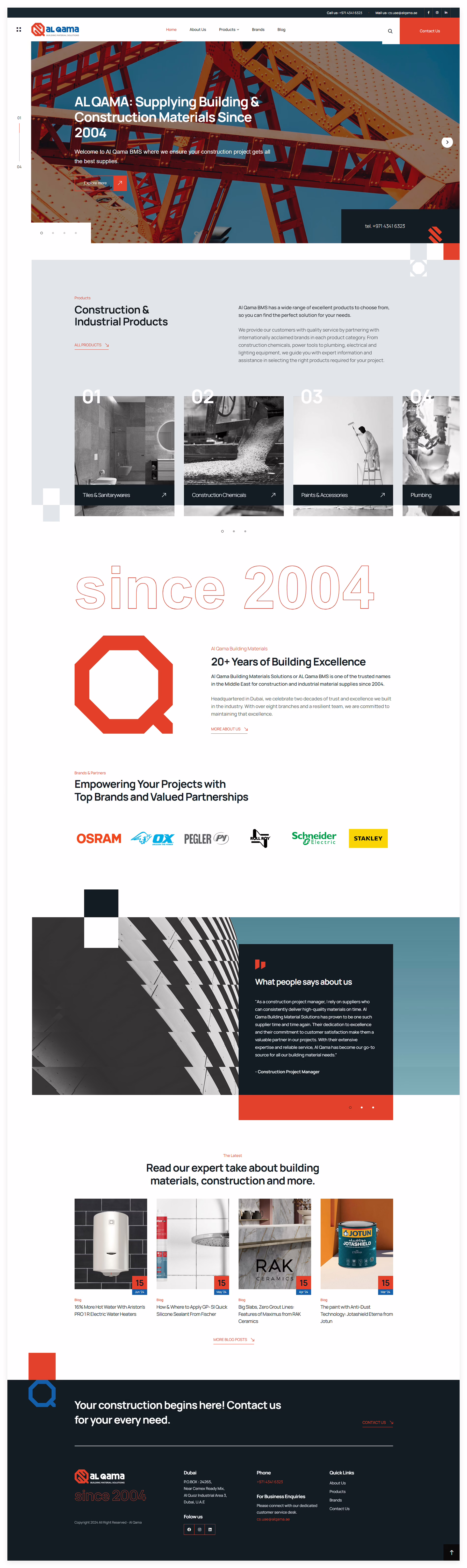 A corporate website developed for Al Qama Building Materials Solutions, a Dubai-based supplier of construction and industrial materials. The platform showcases the company’s wide product range—including construction chemicals, tiles and sanitaryware, paints, electrical supplies, plumbing, tools, and safety equipment—while highlighting partnerships with leading international brands. Designed to present the company’s expertise and product catalog clearly, the website provides customers with easy access to information about materials required for construction and building projects.